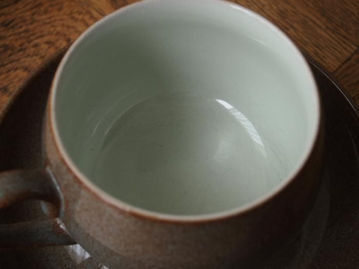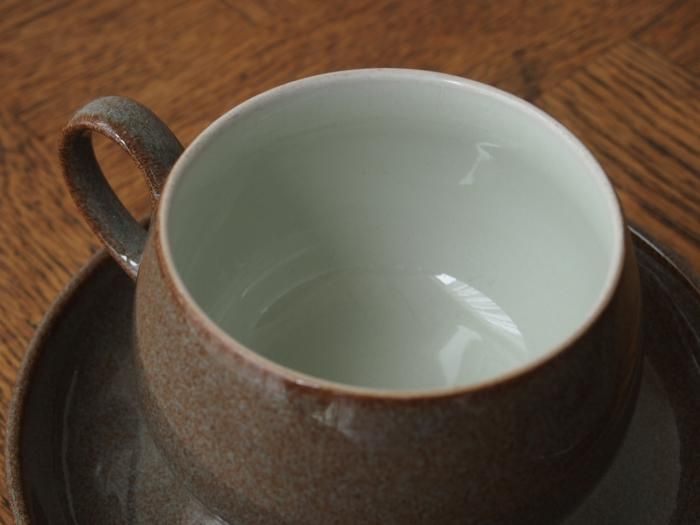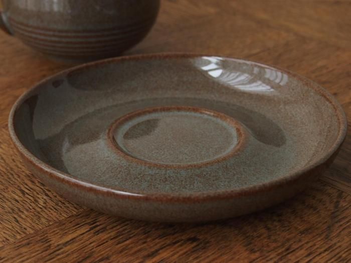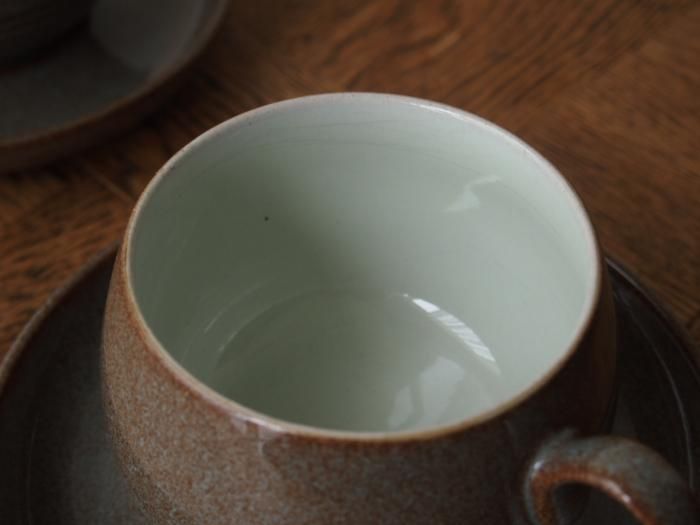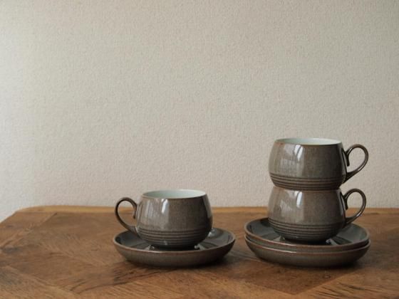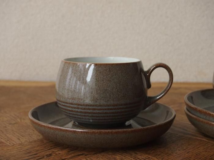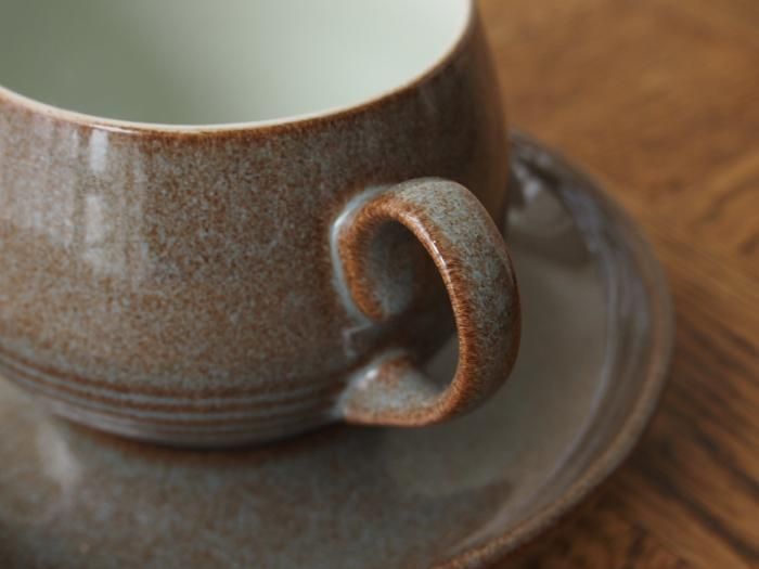 ニュアンスグレーのまるみのあるカップ&ソーサーです。