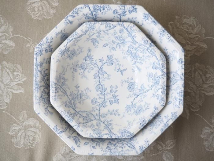 やさしい更紗柄のオクトゴナル深型ボウル、