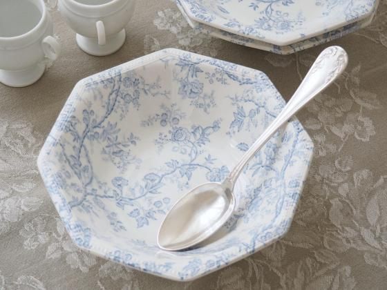 やさしい更紗柄のオクトゴナル深型ボウル、