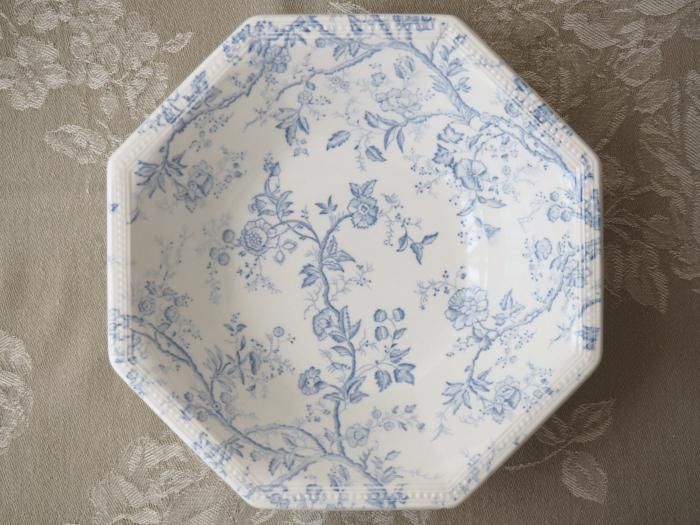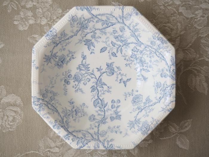 やさしい更紗柄のオクトゴナル深型ボウル、