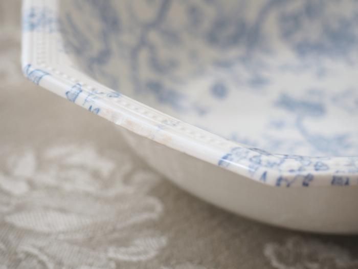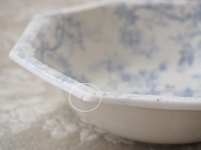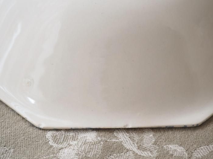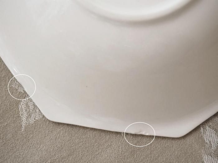 縁に釉薬の剥がれと薄いシミが目立ち、