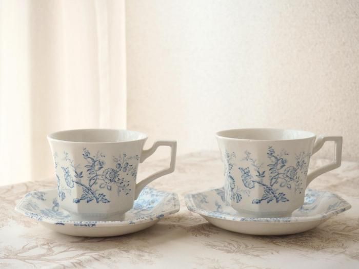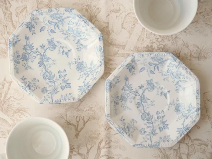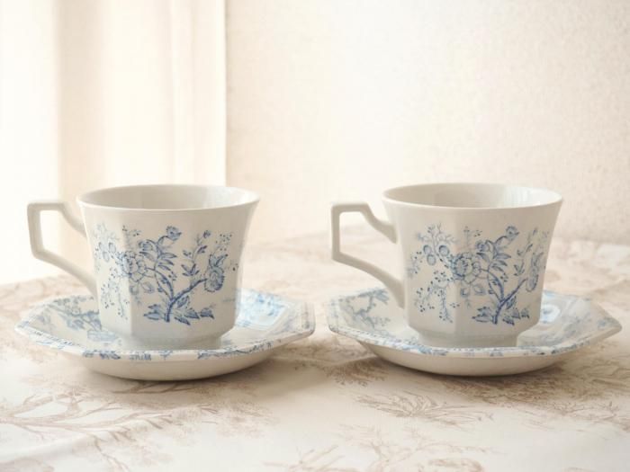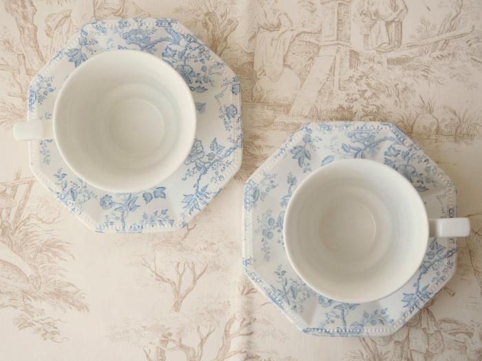 やさしい更紗柄のオクトゴナルカップ&ソーサー、紅茶用です。