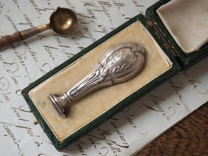 月桂樹があしらわれたシルバー製シーリングスタンプです。