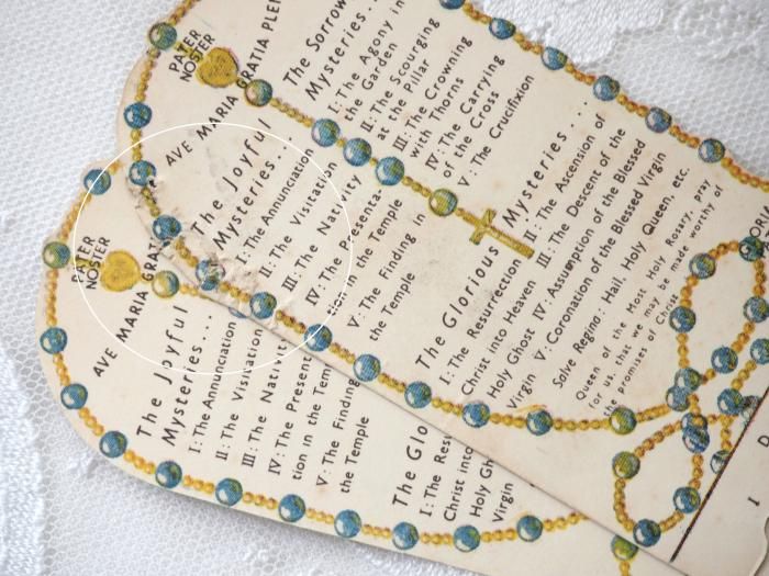 「ロザリオの聖母マリア」がセピア色でプリントされ、