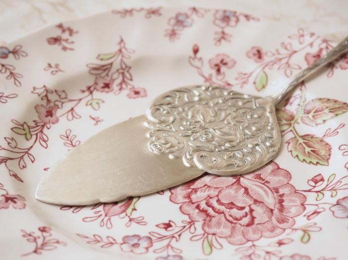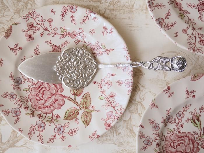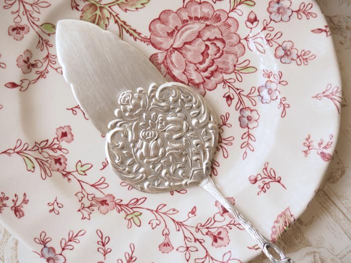 バラレリーフのシルバープレート製ケーキサーバー、