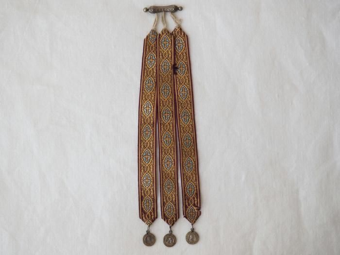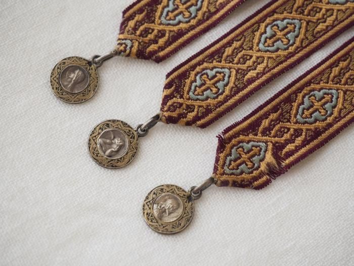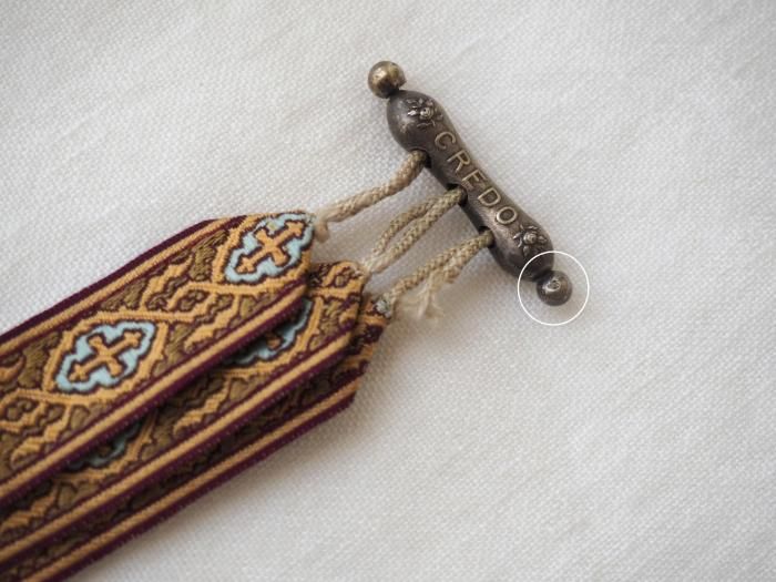 その下にはバラの棘を想わせる装飾と十字架の織リボン、