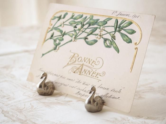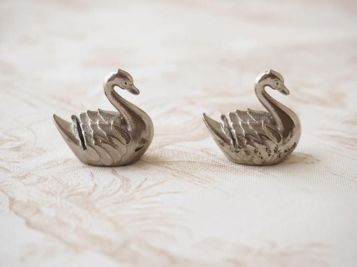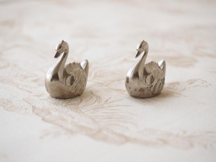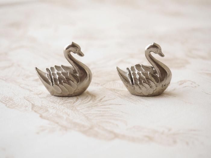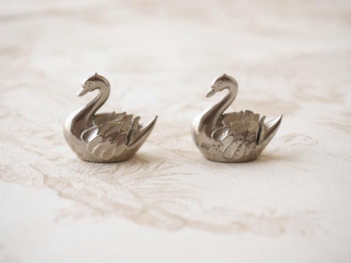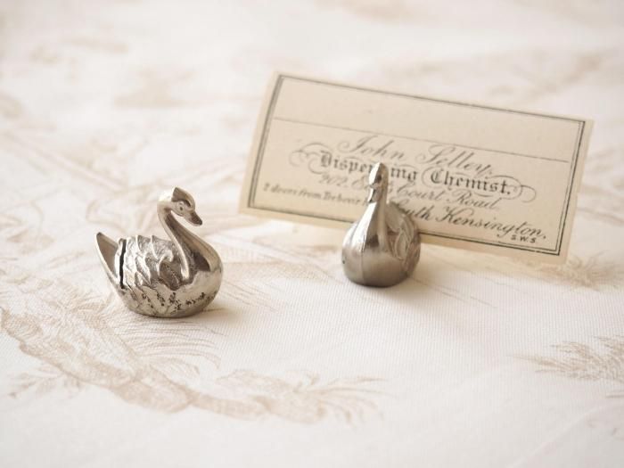 小さな白鳥の金属製カードスタンド2点セット、再入荷です。